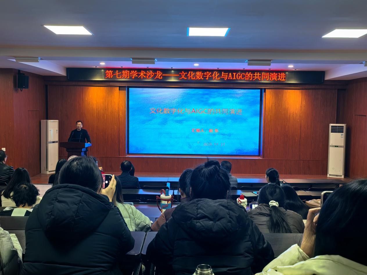 11月27日下午,人文与外国语学院第七期学术沙龙在曲江校区模拟法庭顺利举行。本次学术沙龙特邀陕西省社会科学院文化与历史研究所副所长赵东担任主讲嘉宾,围绕“文化数字化与AIGC的共同演进”展开深入探讨。活动由黄勇副院长主持,吸引外语专业教师及研究生同学共计六十余人参加学习。