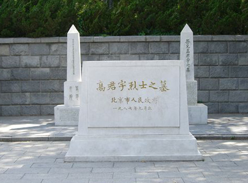 不远处是那座著名的青冢了,1925年,高君宇去世后葬于此,墓碑正面全是高全德题写的墓志。墓碑侧面,镌刻着墓主人自题照片上的那首大气磅礴的小诗,那首光彩照人的千古绝唱。碑文自是评梅手书,遒劲、潇洒。——