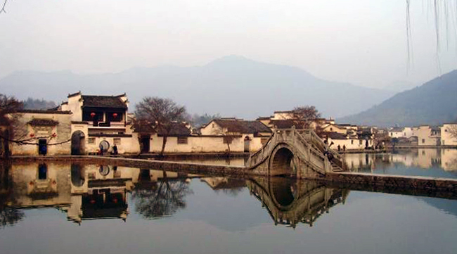 这是一座很普通的小拱桥,当《卧虎藏龙》中的周润发牵着马从桥上缓缓走过时让人隐约感受到了一种淡淡的美,当地人称它为画桥,桥下是一汪幽绿的湖水,桥的那边是村庄。