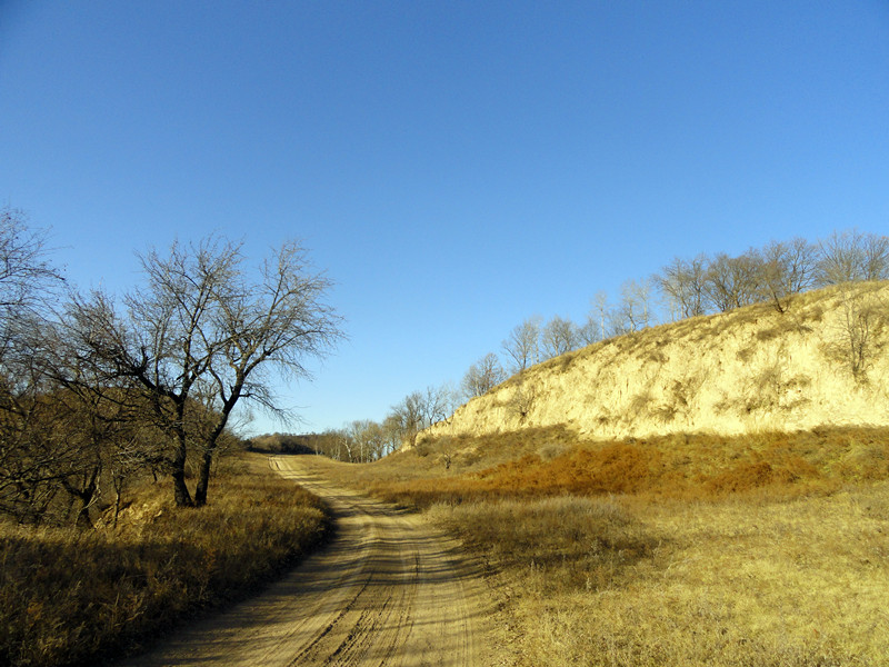 碧云天,黄叶地。秋色蔓延的秦直道,确有几分“千嶂里,长烟落日孤城闭”的寂寥。静谧的夕阳散开一圈圈光晕,黑色的枝桠脱去了绿色的外袍,光秃秃的表面似在聆听行者的低语。风舞黄沙,枯草凄凉,两条车辙印默默地倾轧在或高或低的坡上,为离人传递两地的相思,几番惆怅,几番愁。