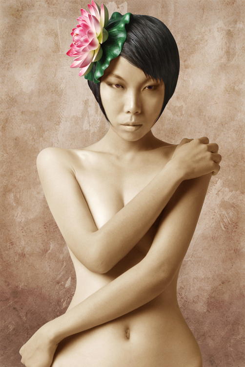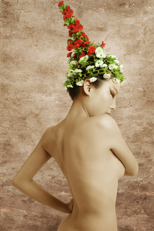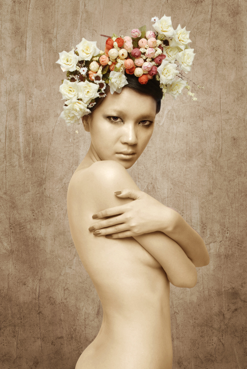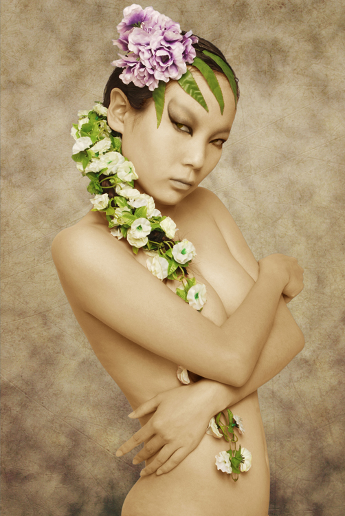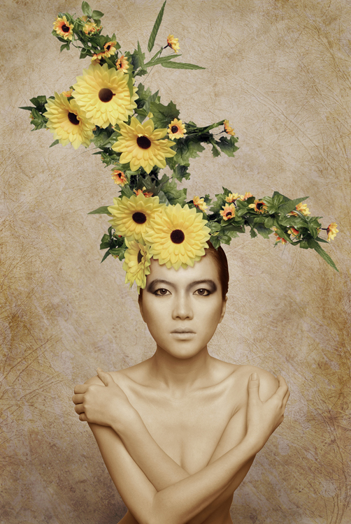 冷峻和寂静,妖艳与凄绝的和谐之美是作品《灵》系列作品给观者的直观感受。笔者通过为模特们“量身”定做只属于“她”的造型,来完善对模特们的独特气质的诠释。略显古铜的肤色,清冷的眼神,独具特色的头饰,加之带有浓郁古典色彩的背景,让画面透出一种独特的气味。这气味让人有孤独的感觉,发现人世间居然有透彻的净化和美丽诡异的仙灵,就在这里远避尘嚣而静静地存在,想停下来远离人群去感受这种滋味。