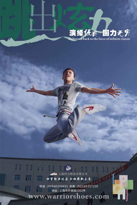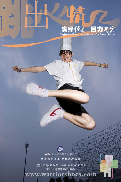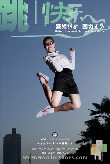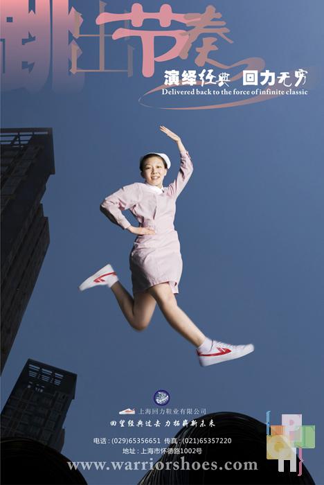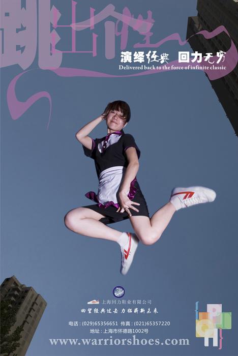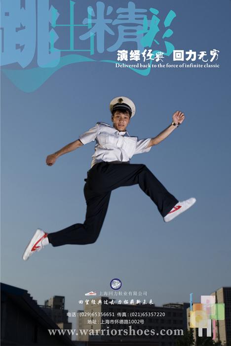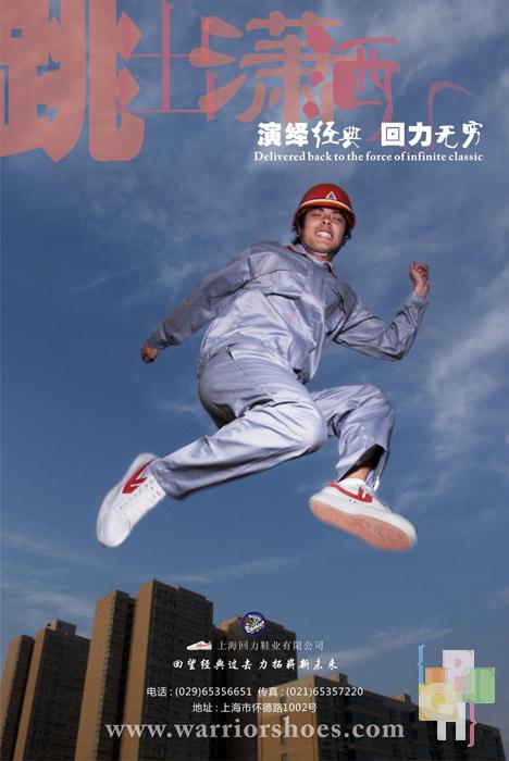 中国青年穿鞋史上,回力鞋曾风靡一时,在90年代初被阿迪耐克等品牌挤下历史舞台。而近年来回力鞋又逐渐呈现飞跃的趋势。回力系列这件作品正是在这样的形势下产生的,它体现了回力鞋倍受各职业青年人的喜爱,它向世人证明-一个崭新的回力时代到来了。