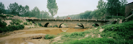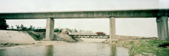 沣河1:咸阳市郊区某段,正在修建中的渭河特大桥横跨沣河水,大桥下临时修建的钢制桥为附近采砂的货车提供方便,每辆货车经过都会扬起一场小型沙尘暴,平均每五到十分钟就有一辆装满砂石的货车经过这里。