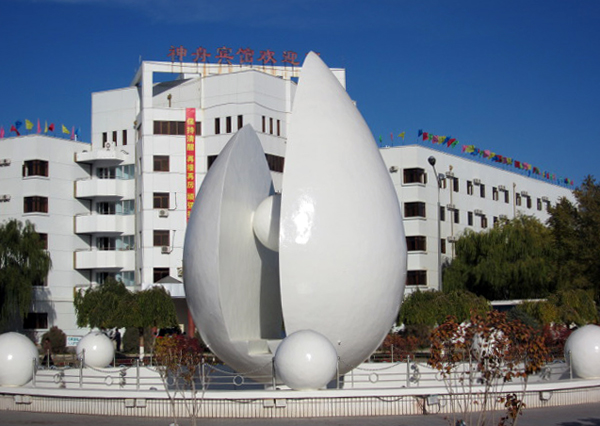 酒泉卫星发射中心又名东风航天城,它位于距酒泉市280公里的戈壁戈壁滩上,中心的所在地实际位于内蒙境内。这里是我国目前唯一载人飞船发射场。东风航天城分两部分:一部分是司政后机关、控制指挥中心和生活区所在地;一部分是距此13公里的组装调试车间和发射塔。整个航天城各类人员大约近3万人。