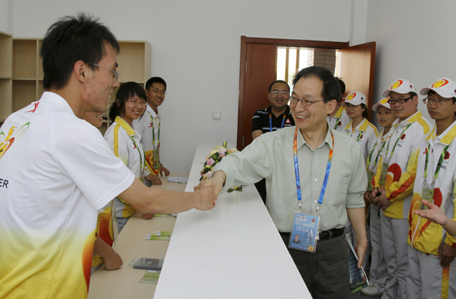 他们首先来到了贵宾入口,慰问那里的二十多名志愿者,与志愿者代表亲切交谈,并询问他们在这的工作情况,了解志愿者的想法及他们各自服务项目。
