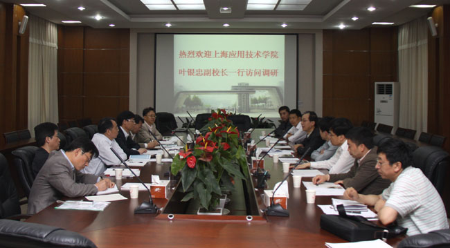 上海应用技术学院副校长叶银忠一行6人于5月4日来我校就加强学校内涵建设、促进学校科学发展等工作进行调研。我校副校长李言及有关学院、部门负责人在101会议室与叶银忠一行进行了亲切座谈。