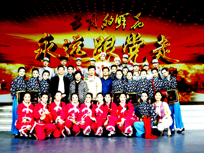 作为陕西仅有的两所参演高校,我校与延安大学的节目先后出场。伴随着《拥军花鼓》的欢快旋律,我校60余名学生演员手舞彩绸敲打着腰鼓出现在了舞台上,他们充满激情,活力无限,通过丰富多彩的舞蹈再现了西北边区人民对党和人民子弟兵的深厚感情,也充分展现出我校大学生永远跟党走,积极向上的精神风貌。此外,我校还有20余名学生参加了《没有共产党就没有新中国》等节目的表演。