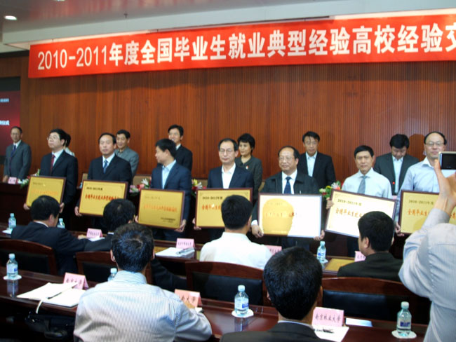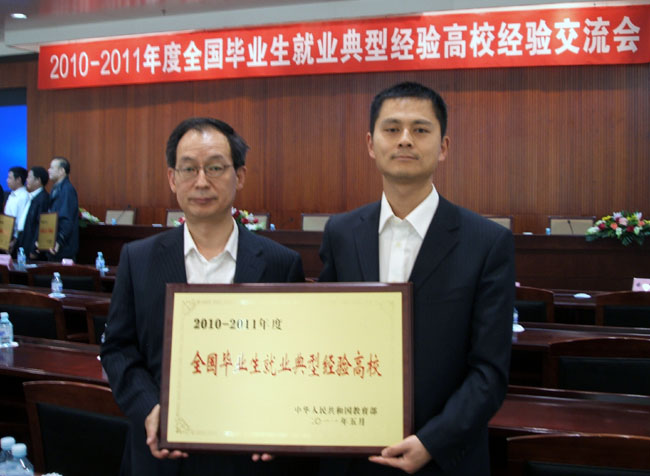 本报讯 我校被授予“2010~2011年度全国毕业生就业典型经验高校”。教育部于5月10日召开2010-2011年度全国毕业生就业典型经验高校经验交流会,我校毕业生就业领导小组副组长、副校长李言和学生处处长马宁代表我校出席大会并上台领奖。