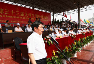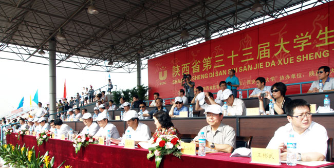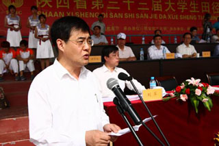 陕西省教育厅副厅长吕明凯致开幕词。他首先向为发展我省体育事业做出贡献的老师和学生表示敬意,对支持本届大学生运动会顺利召开的西安理工大学领导、老师和同学们表示感谢。他指出,为全面落实《国家中长期教育改革和发展规划纲要(2010——2020年)》精神,进一步落实《中共中央、国务院关于加强青少年体育增强青少年体质的意见》(中发﹝2007﹞7号)精神,大力开展我省大学生阳光体育运动,切实提高学生体质健康水平,推动我省高校田径运动发展,提高竞技水平,今年是做好相关工作至关重要的一年说,希望所有的参赛学校秉承体育精神,为高校体育事业的蓬勃发展贡献力量,并预祝本届大学生田径运动会圆满成功。