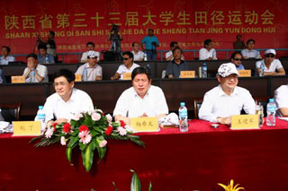 本报讯 5月18日上午,陕西省第33届大学生田径运动会在西安理工大学曲江校区田径场隆重开幕。陕西省省委教育工委书记、陕西省教育厅厅长杨希文,陕西省体育局局长王建军,西安理工大学校长刘丁,陕西省教育厅副厅长吕明凯,陕西省委教育工委干部处处长高晶华,陕西省教育团工委书记、陕西省委教育工委组群处副处长王恒斌,陕西省委教育工委宣教处处长李博飞,陕西省教育厅学生处处长张长宝,陕西省教育厅财务处处长张新民,陕西省教育厅体卫艺处处长祝亚肖,陕西省厅纪工委调研员苏有义,陕西省体育局办公室主任张王平,陕西省教育厅体卫艺处副局长王彬武,陕西省大学生体育协会主席王庆波,陕西省教育厅稳定办干部马飞跃,陕西省大学生体育协会及兄弟院校的相关领导出席了开幕式。开幕式由西安理工大学副校长刘军主持。