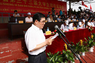 陕西省委教育工委副书记、陕西省教育厅厅长杨希文宣布陕西省第33届大学生田径运动会开幕。