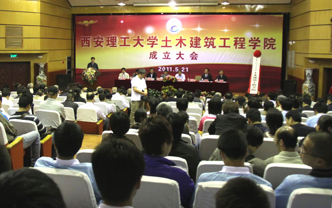 陕西省教育厅副厅长郭立宏、陕西省住房与城乡建设厅副厅长韩一兵、校党委书记周孝德、校长刘丁、中国人民解放军后勤工程学院教授陈正汉、陕西金源集团总裁高振海、校党委副书记傅有明等领导出席并在主席台就座。中国水电建设集团第十五工程局、汉中市人民政府、大唐汉江水电开发公司、商洛学院、西北勘测设计研究院、煤航集团实业发展有限公司等友好单位的主要领导,兄弟院校领导,土木建筑工程学院负责人和师生300余人参加了大会。会议由副校长刘凯主持。
