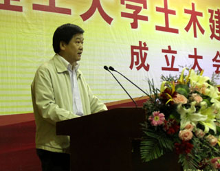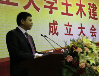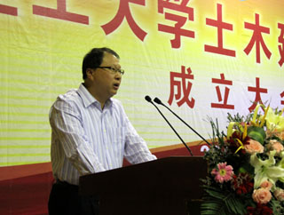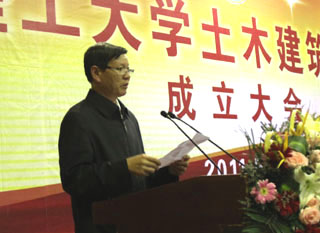 刘丁校长讲话。他分析了当前土木建筑工程领域发展的大环境,简要回顾了土木建筑工程学院成立的历程,并指出,成立土木建筑工程学院是我校进一步优化学科专业布局,实现建设高水平教学研究型大学的一项重要举措。对土木建筑工程学院今后的发展,刘校长提出了三点期望:一要发挥优势,突出特色,要认真研究国家社会发展对人才的需求,结合学院实际,加强学科交叉与融合,以人才培养为核心,努力形成学科建设、科学研究鲜明的办学特色;二要加强交流,提高水平,要抢抓机遇,广泛建立合作和联系,注重实践,增强服务国家和经济建设的能力与水平;三要开拓创新,科学发展,力争发展成为国内知名的土木建筑学科和专业,努力为国家和地方经济建设、社会发展做出更大的贡献。