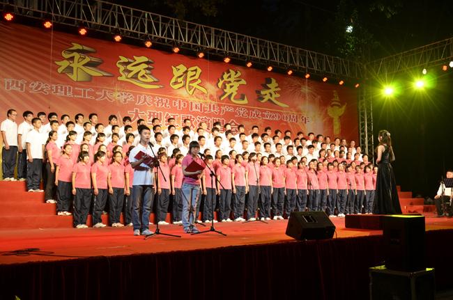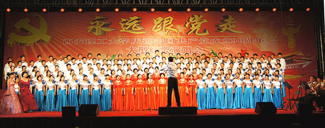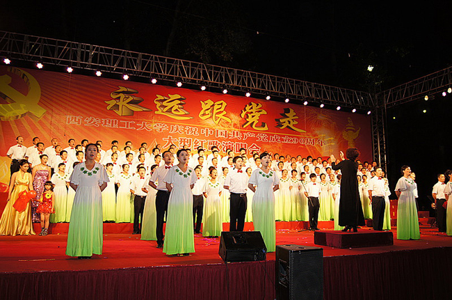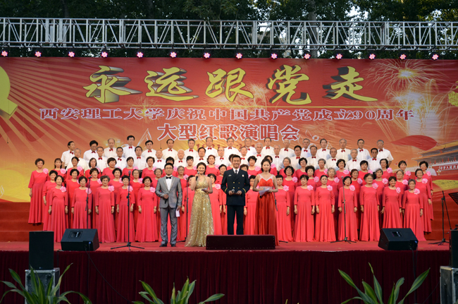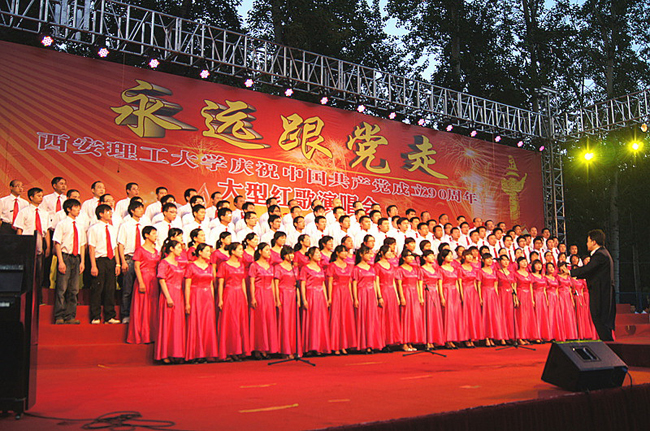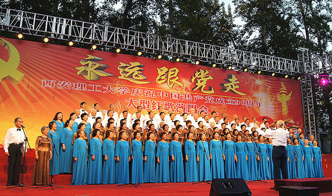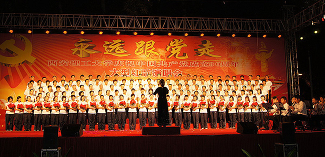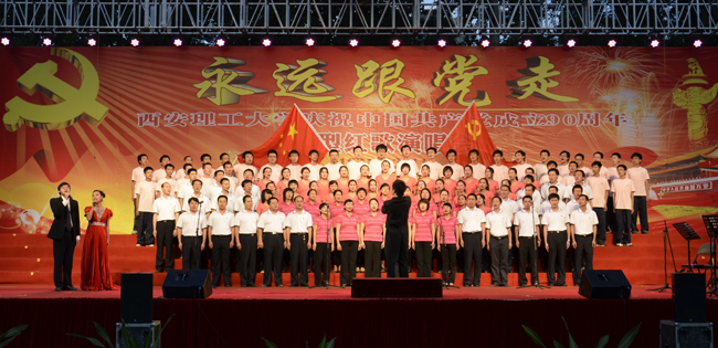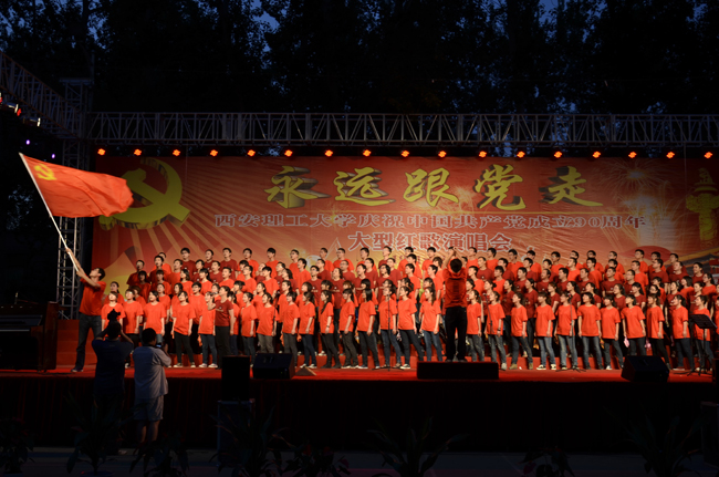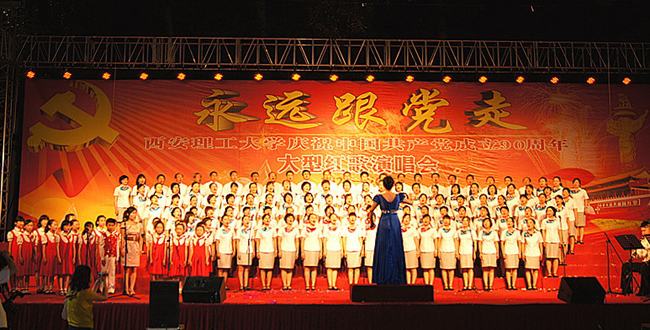 本报讯 6月10日晚7:00,由中共西安理工大学委员会主办的庆祝建党90周年“永远跟党走”红歌演唱会在金花校区篮球场举行。