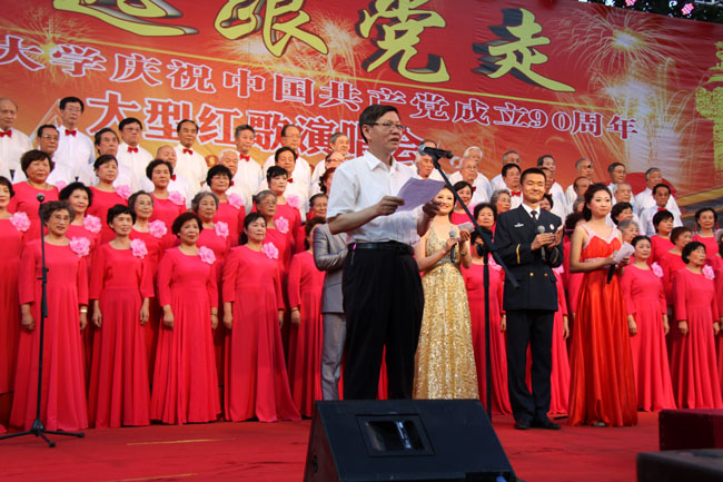 校党委副书记傅有明在演出前致辞。他说,我们隆重举行“永远跟党走”大型红歌演唱会,就是要激励广大师生牢固树立热爱党、热爱祖国、热爱人民的理想信念,传承优秀文化,弘扬时代主旋律,凝心聚力,努力推动我校教育事业又好又快发展,用实际行动向党的90华诞献礼!