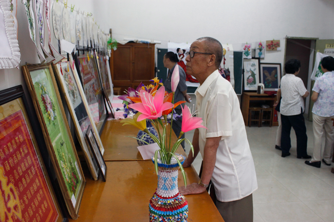 本报讯 为庆祝中国共产党建党九十周年,我校退休办工艺美术社于6月16—17日、20—21日在退休办书画室展出由离退休教职工制作的工艺品美术展。展览已经连续举办七届。本届展览的参展作品主要由理工大离退休人员制作,也有部分爱好工艺美术的职工家属积极参与,共计三十多人。参展作品近六十多件,种类包括丝带绣、布贴画、十字绣、丝网花、塑料工艺、手绘扇面等,内容丰富,题材各异,各具特色。