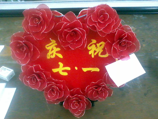 为庆祝建党九十周年合力制作的布贴画