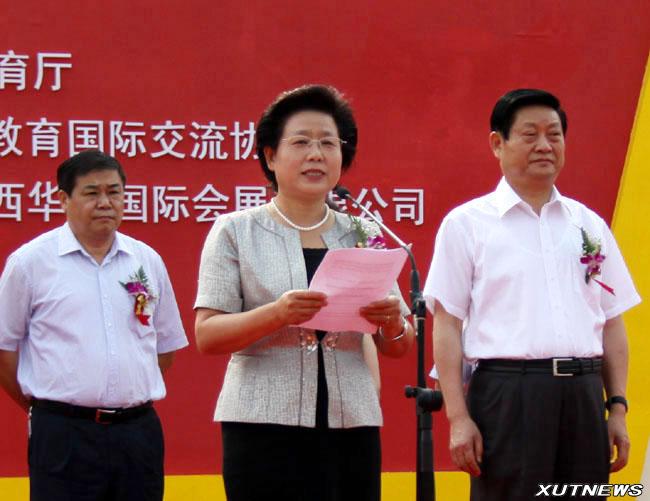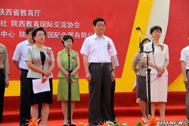 陕西省教育厅厅长杨希文致词。杨希文厅长介绍了本次展览会,回顾了“十一五”期间陕西省教育事业所取得的长足进步,表示省教育厅坚持教育强省的战略、教育富省的目标不会动摇。随后,西北大学校长方光华代表全体参展高校发言。方校长评价了陕西高校教育所取得的卓著成效,并着重介绍了西北大学在文史研究方面所取得的成就,表示西大将继续办有世界影响的大学。之后,王侠副书记代表中共陕西省委讲话。她充分肯定了陕西省高等教育事业与科技创新所取得的进步,指出陕西省省委将会继续支持陕西高校教育事业的发展。最后,赵正永省长宣布博览会开幕。礼花齐放,彩雾弥漫,会场进入了一片轰动的掌声中。