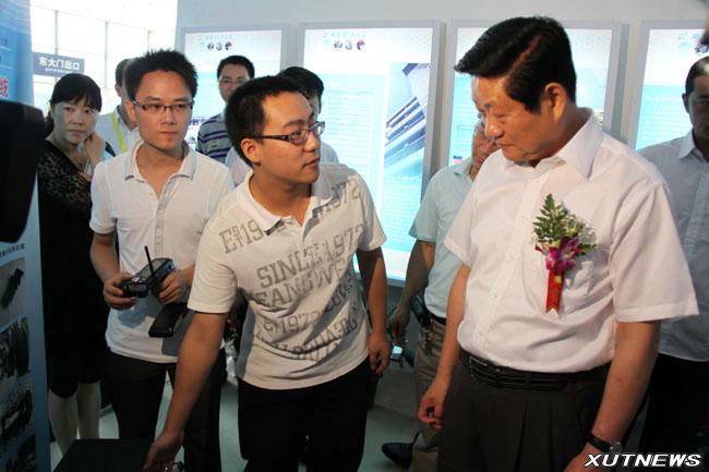 在大学生科技创新成果方面,我校大学生科技作品也引人注目。由陈杰、陈皓、黄代航三名同学参与制作的“多轴重型车辆转向控制系统”受到了赵正永省长的关注,他与同学亲切交谈,并鼓励他们多多与实业单位合作,在实践中实现自我创新思维的升华。陕西省挑战杯一等奖作品“用于皮影的悬索机构”的作者之一魏凯接受了西安电视台的采访,他从自己的创作初衷谈起,并对该作品进行了介绍,并现场演示了其工作原理。