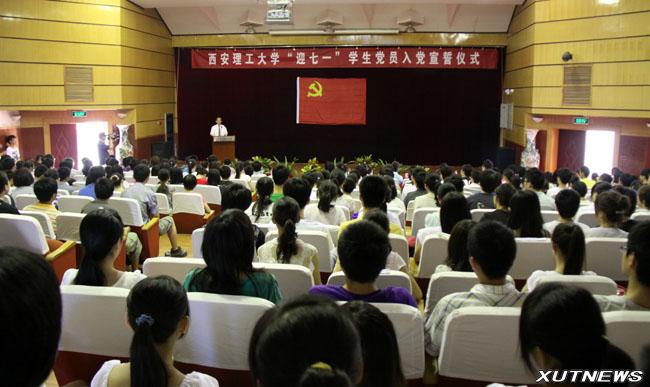在喜迎中国共产党建党90周年之际,西安理工大学于6月30日隆重举行“迎七一”党员入党宣誓仪式。西安理工大学副校长李言出席会议,党委组织部、党委办公室、学生处、党委宣传部、校团委、各学院副书记及300余名新党员在图书馆报告厅参加了入党宣誓仪式。宣誓仪式由学生处副处长马福主持。