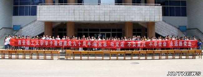宣誓仪式结束之后,所有与会领导和党员在“西安理工大学学子喜迎建党九十周年:颂党恩 听党话 不负重托 不辱使命 永远跟党走”的横幅上签名,表达对党的热爱与敬仰,对奋斗目标的不懈追求,以此向党的90岁生日献礼。