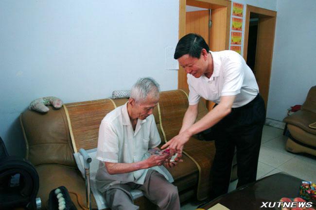 在中国共产党成立90周年之际,校党委副书记、纪委书记傅有明于6月30日上午看望慰问了红军时期参加革命的93岁高龄的老党员、老干部徐干同志,向老人家送上了省委老干部局和学校的关怀及慰问金,并为徐老颁发了由离退休党总支制作的“革命贡献奖”水晶杯。