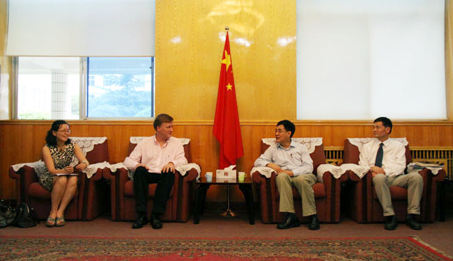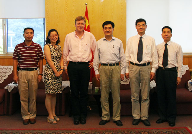 德国PVA公司董事长康恩博博士(Arno Knebelkamp)一行三人于7月6日访问我校,刘丁校长、许云华副校长分别与康恩博博士一行进行了坦率、友好的会谈。校资产公司总经理、理工晶科公司董事长张栓兴,理工晶科公司总经理王俊辉参加了会谈。
