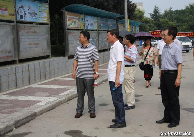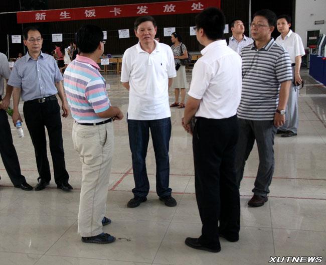 校党委副书记傅有明,副校长张淼丰、李言于8月12日下午来到曲江校区,深入各个关键部位,实地检查迎新准备情况。