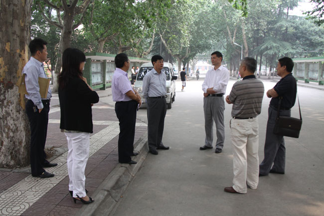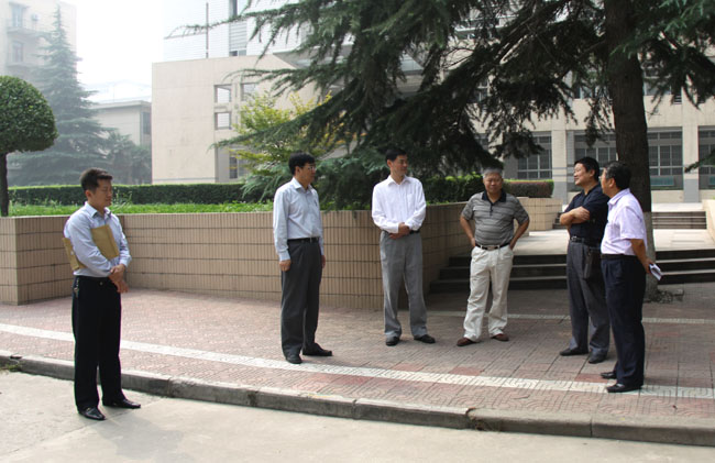 8月24日上午,刘丁校长、许云华副校长在校办、基建处、后勤处、资产管理处、宣传部等部门负责人陪同下,对金花校区校园环境进行了检查。