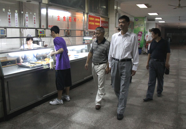 许云华副校长一行深入到学生公寓、食堂等地,对环境卫生、饮食安全、道路维修、校容校貌等进行了细致检查,查找存在问题并安排相关部门尽快解决,为新学期的到来创造良好的校园环境。