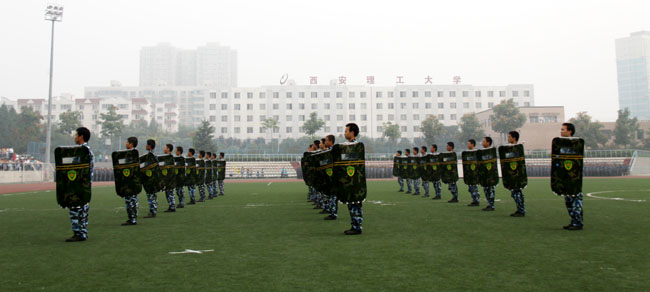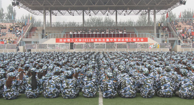 军训汇报总结大会由校武装部部长李西领主持。西北工业大学、长安大学、陕西师范大学、西安石油大学、西安科技大学、西安工程大学等兄弟院校学生处、武装部领导和我校相关职能处室和各学院负责人等也出席大会并观看了军训汇报表演。