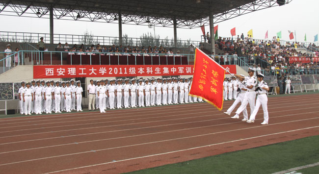 军旗猎猎,军歌嘹亮。8月28日上午,我校2011级新生军训总结汇报大会在曲江校区体育场隆重举行。经过14天的紧张训练,在圆满完成了各项军训任务后,我校2011级新生向学校各级领导和广大师生交上了一份满意的答卷。
