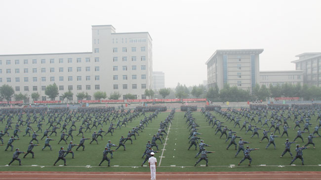 作为新生入学的第一课,本次军训,自8月15日开始,历时14天。共有参训学生4272人,编成6个营、20个连,共完成了条令条例学习与训练,轻武器射击预习、行军拉练、消防疏散演习、军体拳等科目的军事技能训练;组织了队列会操、内务卫生、宣传报道、行军拉练、歌咏比赛等竞赛。通过军训,使广大新生不仅受到了一次军事洗礼,更增强了组织纪律性,树立了集体主义观念,增强了国防和国家安全意识,提高了自身素质。