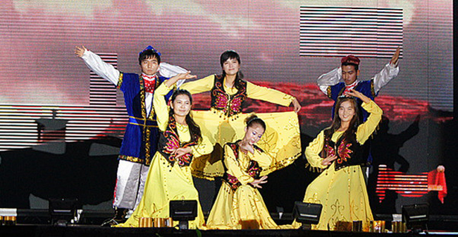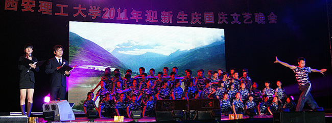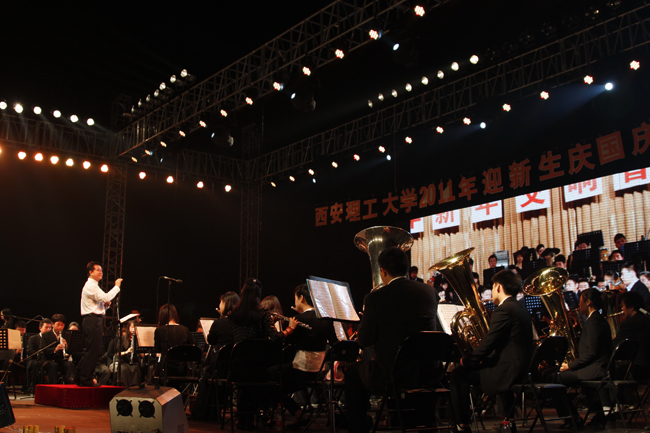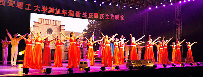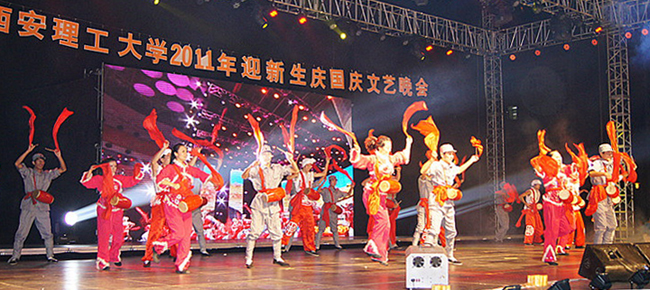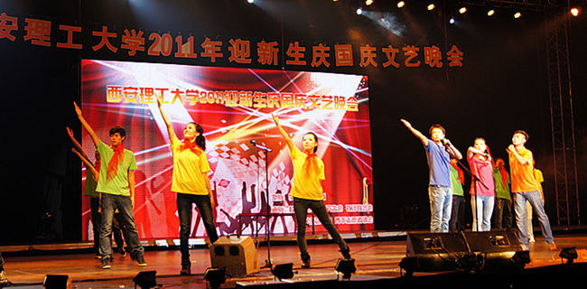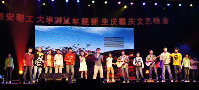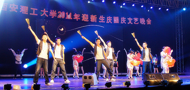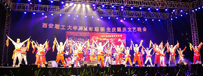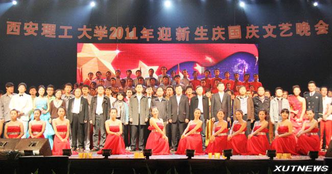 本报讯 9月25日晚,我校2011年“迎新生· 庆国庆”文艺晚会在曲江校区足球场隆重举行。校党委书记周孝德,校党委副书记傅有明,副校长李言、许云华等校领导与四千多名新生一起观看了演出。