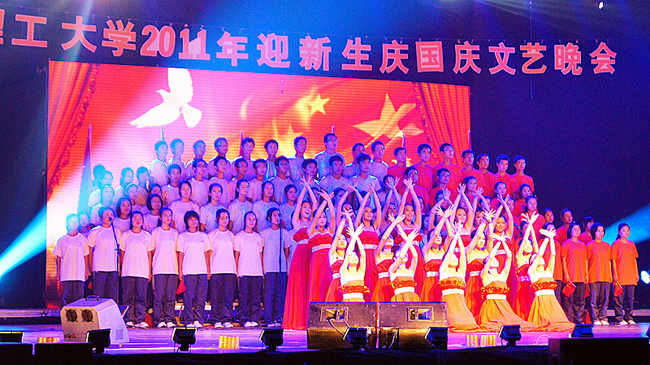 晚会在校管乐团合奏的豪壮、优美的《双鹰旗下进行曲》中拉开帷幕。整场晚会主题鲜明,节目丰富多彩,处处洋溢着我校大学生的青春与活力。
