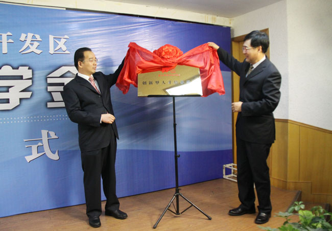 刘丁校长与盛红明主任一同为“创新型人才培养基地”揭牌。