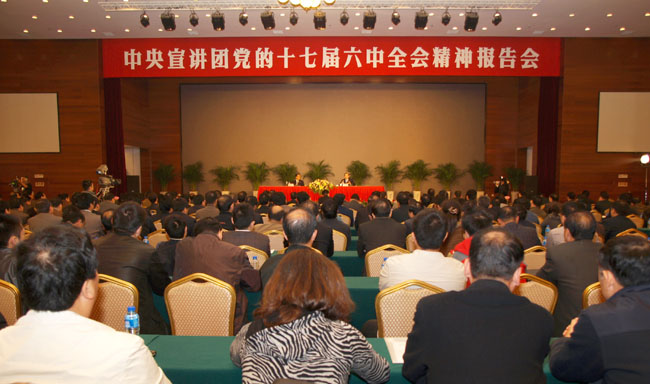 11月3日上午,中央宣讲团党的十七届六中全会精神报告会在西安举行。中央宣讲团成员、中宣部副部长、中央外宣办主任王晨进行宣讲。省委书记赵乐际主持。