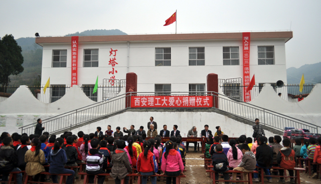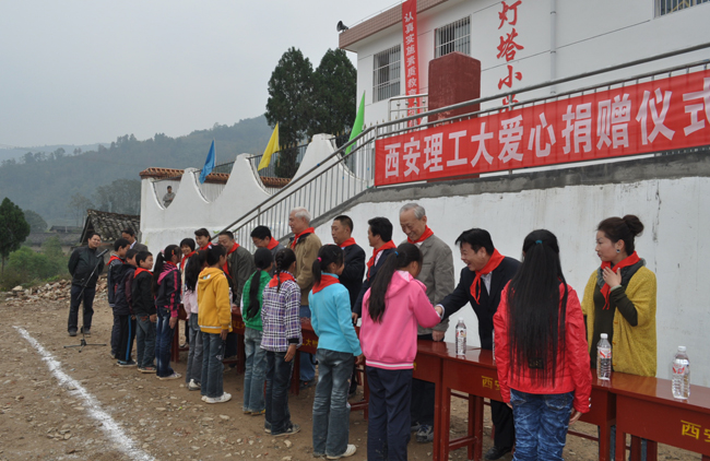 本报讯 10月20日,秋高气爽,山菊飘香。西安理工大学离退休党总支,组织各支部、老科教工作者协会、老教授协会、关心下一代工作委员会负责同志,从西安出发,来到安康市汉滨区迎风乡灯塔小学,举行爱心捐赠活动。