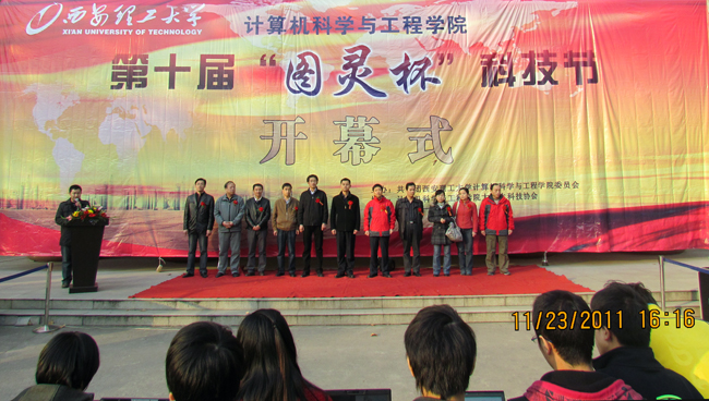 本报讯 11月23日下午,计算机学院第十届“图灵杯”科技节开幕式在金花校区图书馆广场举行。出席本届科技节的嘉宾有:学生处处长马宁,印包学院党委副书记、副院长崔晓博、自动化学院党委副书记、副院长白华煜、水利水电学院党委副书记、副院长罗建华等。