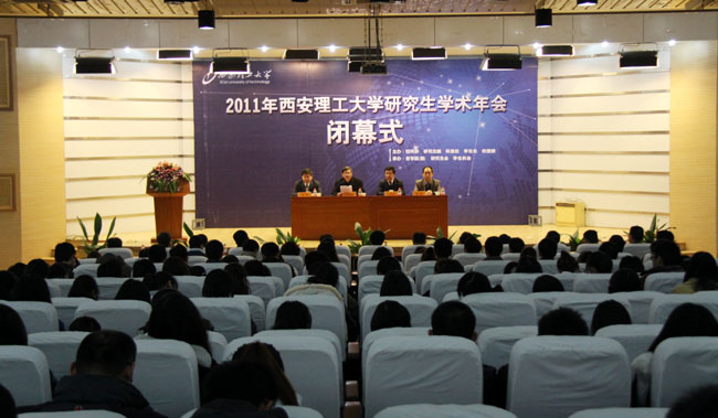 本报讯 2011年西安理工大学研究生学术年会经过富有成效的学术活动后,于11月27日在曲江校区科技报告厅落下帷幕。西安交通大学副校长宋晓平教授,我校党委副书记傅有明,副校长刘凯、李言出席了大会闭幕式,有关部门和各学院负责研究生工作的领导以及近400名研究生参加了大会。