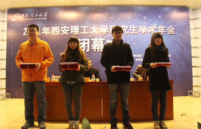大会闭幕式由刘凯副校长主持,李言副校长宣读了关于表彰2011年研究生学术年会优秀论文作者的决定。在主席台就座的领导为优秀论文作者代表颁奖。