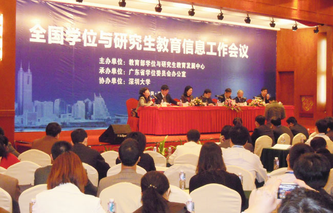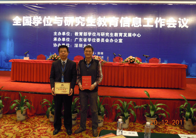 本报讯 全国学位与研究生教育信息工作会议于12月20日在深圳召开,国务院学位委员会办公室副主任梁国雄,教育部学位中心主任李军,学位中心信息处赵瑜处长等出席了会议并讲话。我校获得“全国学位与研究生教育信息工作先进单位”的荣誉称号,研究生院袁建同志被评为“全国学位与研究生教育信息工作先进工作者”。校学位办主任焦明星教授作为先进单位代表进行了大会经验交流发言。