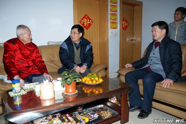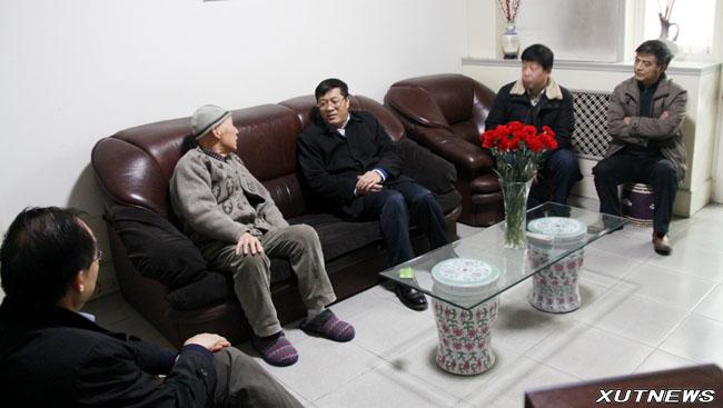 在新年来临之际,12月29日下午,校党委书记周孝德,校长刘丁,校党委副书记、纪委书记傅有明,副校长张淼丰、刘凯、李言、刘军、许云华,总会计师赵明扬,工会主席王华民等,在党办、校办、离退休办、校医院等部门负责人陪同下,亲切慰问了我校老红军徐干及厅局级以上离休干部,送去了新年的慰问和祝福。