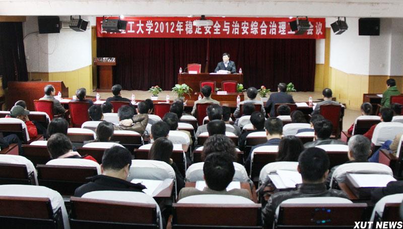 本报讯 2012年稳定安全与治安综合治理工作会议于3月30日在科技报告厅召开。校党委书记周孝德,校长刘丁,党委副书记、纪委书记傅有明,副校长张淼丰、刘凯、李言、许云华,总会计师赵明扬出席会议。
