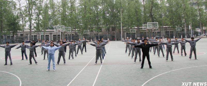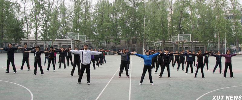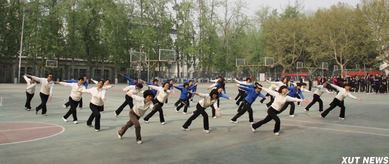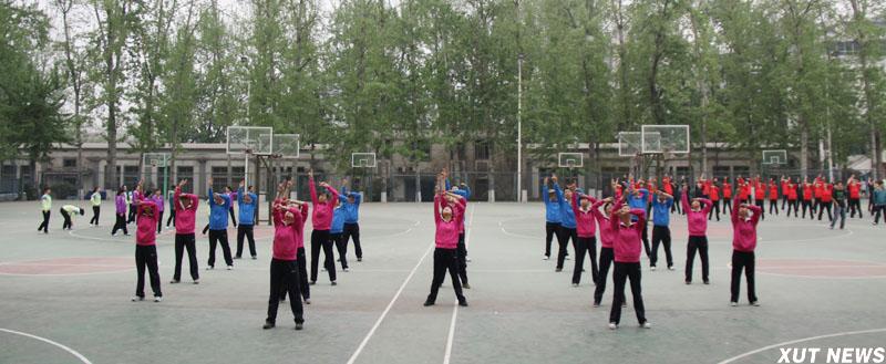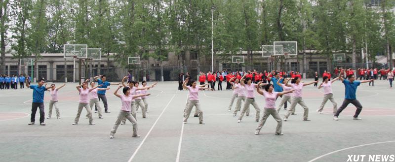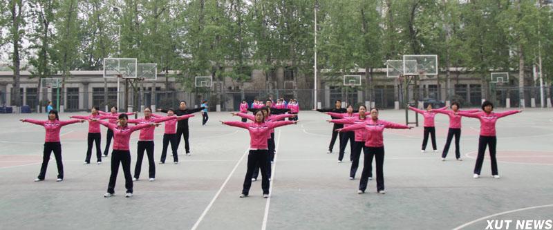 本报讯 我校第二届教职工广播体操比赛4月10日下午在金花校区篮球场举行。16支着装整齐、精神饱满的参赛队伍依次登场亮相。