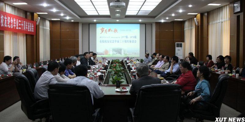 今年是国家恢复高考后首批招收的77、78级大学生毕业30周年,为纪念这一特殊时刻,追忆逝水年华,彰显传统,发扬创新,校庆前夕,校友工作处与有关部门组织召开77、78级校友纪念毕业30周年座谈会。4月27日下午,我校金花校区101会议室里欢歌笑语,气氛热烈,50余位77、78级校友欢聚一堂,畅叙友情,共话往昔,一张张旧照片勾起多少回忆,一段段老故事浓缩几多情谊,他们以自己的方式共同致敬那一段难忘岁月。