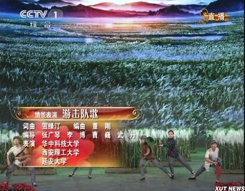 本报讯 5月4日晚,“‘五月的鲜花’——心中的歌儿唱给党”2012年全国大学生校园文艺会演在中央电视台隆重举行。西安理工大学和华中科技大学、延安大学共同演出了《游击队之歌》,展示了当代大学生在“五四”精神的感召下,缅怀先辈的光辉业绩,坚定理想信念,沿着党指引的方向,奋发进取的良好精神风貌。演出受到观众的好评。