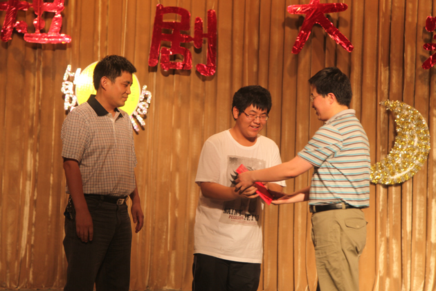 2011级知行教改班全体学生和他们的英语教师共同参与了本次活动,形成了师生同台互动的良好氛围。经评委评议,共评出特等奖1项,一等奖2项,二等奖3项。经典童话剧《美女与野兽》获得特等奖。副校长刘军为参演师生颁发了获奖证书。