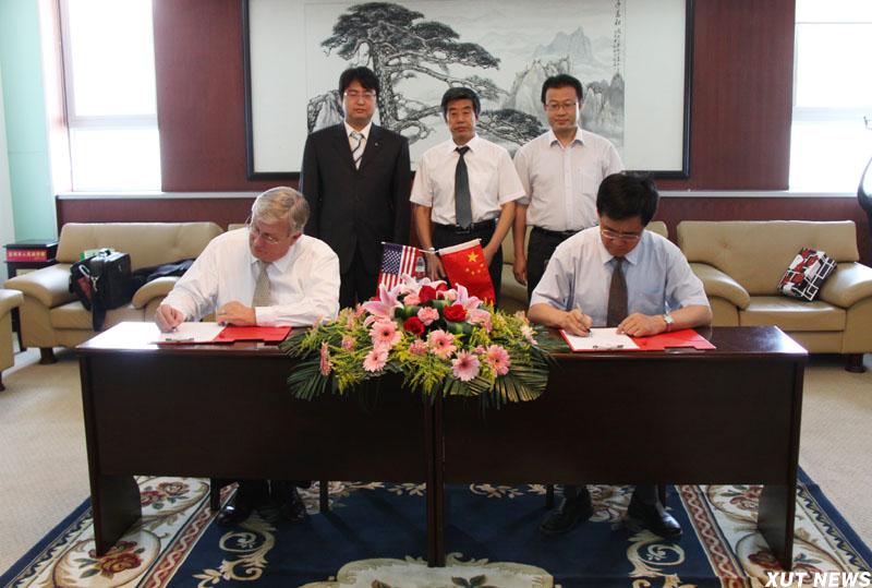美国圣克劳德州立大学校长Potter先生2012年6月16日访问了我校,并与我校签署了两校3+2工程管理硕士项目合作交流协议。