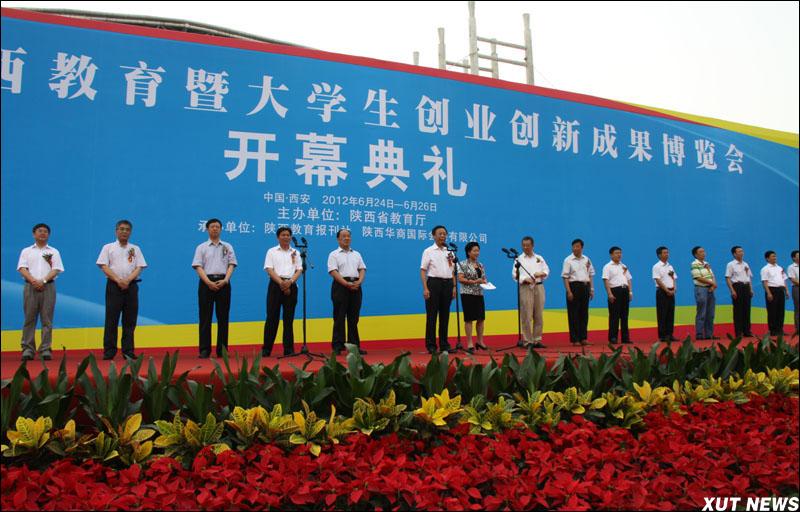 本报讯 6月24日上午,第二届陕西教育暨大学生创业创新成果博览会在西安曲江国际会展中心隆重开幕。陕西省委副书记、省高教工作领导小组组长孙清云宣布开幕,陕西省副省长、省高教工作领导小组副组长朱静芝致辞。陕西省委教育工委副书记、省教育厅厅长杨希文主持开幕式。我校党委书记周孝德,副校长李言、刘军带队参加了开幕式。